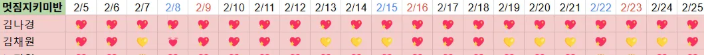 - 2월 한 달동안 하루도 빠지지 않고 운동을 완료했다! 알게모르게 체력이 붙는 느낌이다.