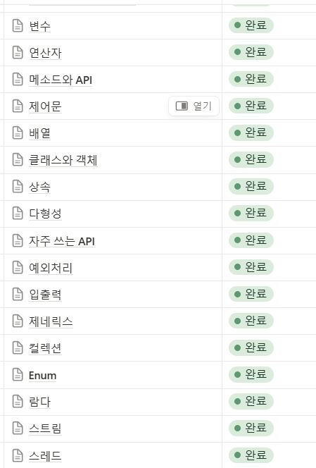 복습을 매일 하진 못했지만 그래도 주말을 이용해 java에 대한 복습을 완료했다.