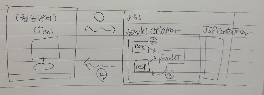 - !! 물론 웹 브라우저와 WAS 사이에 웹 서버가 존재한다 !!